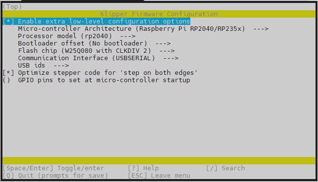 git clone https://github.com/Klipper3d/klipper cd klipper make menuconfig